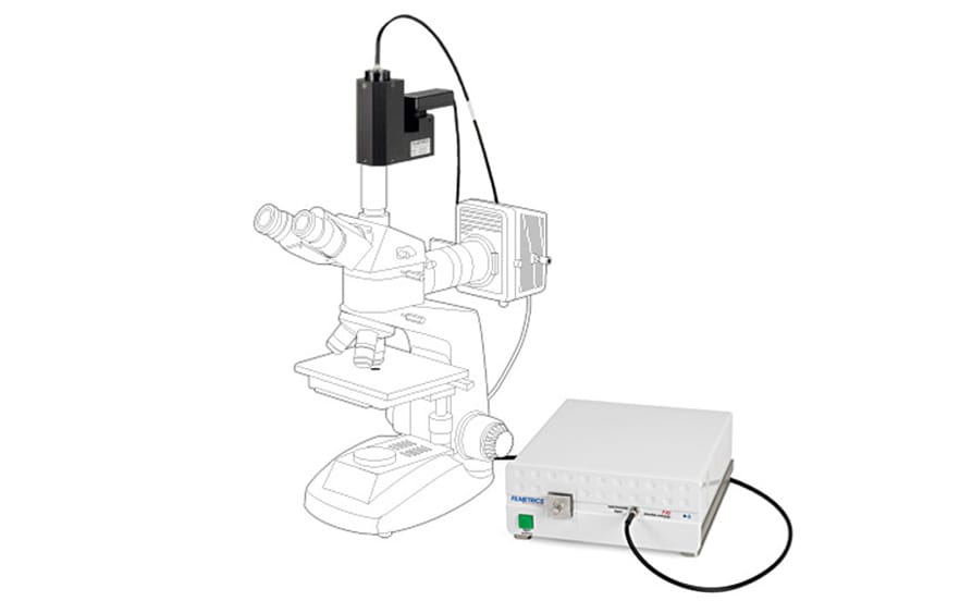 Filmetrics F40 薄膜厚度測(cè)量?jī)x的光譜測(cè)量系統(tǒng)讓用戶簡(jiǎn)單快速地測(cè)量薄膜的厚度和光學(xué)常數(shù),通過(guò)對(duì)待測(cè)膜層的上下界面間反射光譜的分析,幾秒鐘內(nèi)就可測(cè)量結(jié)果。當(dāng)測(cè)量需要在待測(cè)樣品表面的某些微小限定區(qū)域進(jìn)行,或者其他應(yīng)用要求光斑小至1微米時(shí),可以使用Filmetrics F40 薄膜厚度測(cè)量?jī)x。使用先校正顯微鏡的物鏡,再進(jìn)行測(cè)量,即可獲得厚度及光學(xué)參數(shù)值。只要透過(guò)Filmetrics的C-mount連接附件,Filmetrics F40 薄膜厚度測(cè)量?jī)x就可以和市面上多數(shù)的顯微鏡連接使用。C-mount上裝備有CCD攝像頭,可以讓用戶從電腦屏幕上清晰地看樣品和測(cè)量位置。